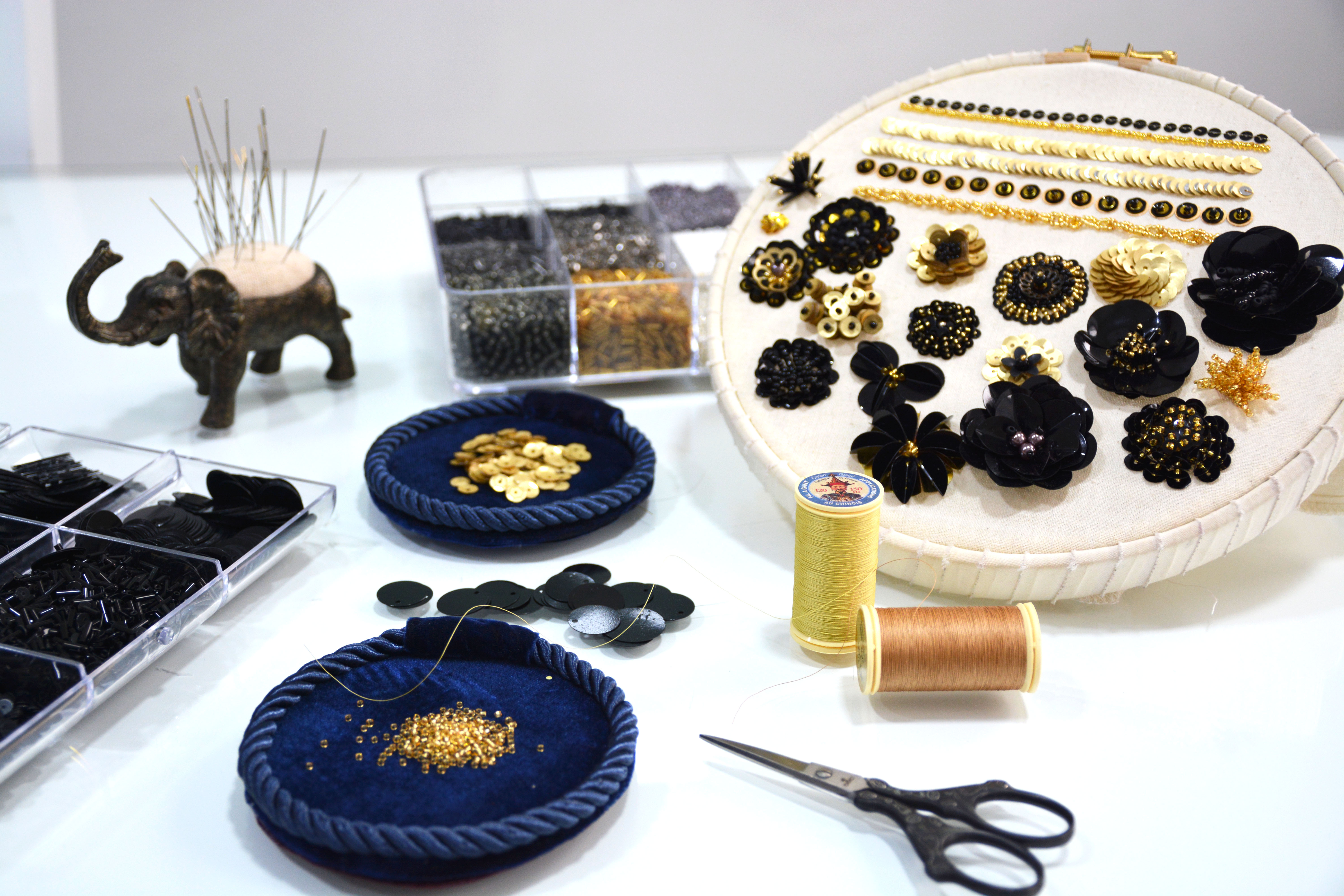Todos los materiales para nuestros talleres están incluidos. Mientras estés realizando el curso seleccionado, podrás utilizar los materiales del taller tales como hilos, tijeras, agujas, telas, bastidores, pedrería, lentejuelas, etc.